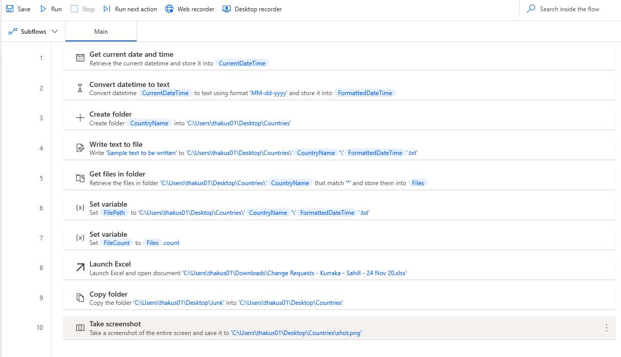 You can also create sub flows from Web recorder and Desktop Recorder in the above ribbon.